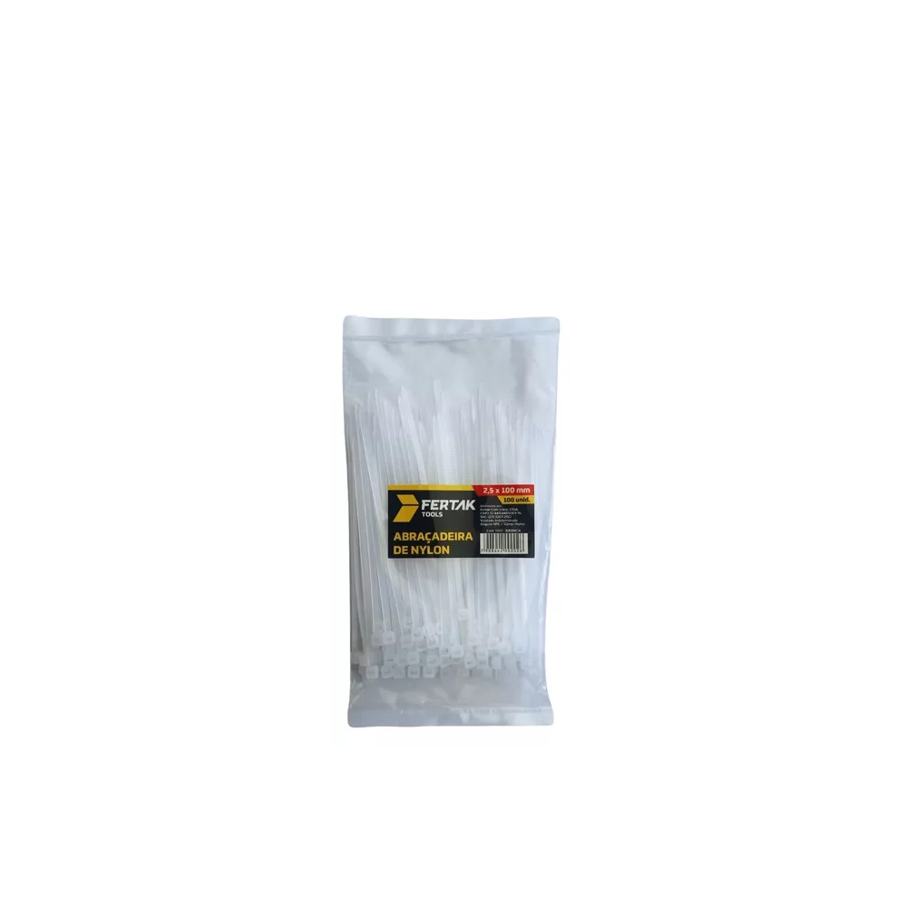 Abraçadeira Nylon 10cm Branca 2.5 X 100mm Pacote C/ 100 Unidades
