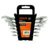 Essa ferramenta é muito versátil, em uma ponta ela pode ser usada como chave de boca e na outra como chave estrela. Suas bocas calibradas são ideais para apertar e afrouxar parafusos e porcas sextavadas ou quadradas de qualquer tamanho. Confira o tamanho das chaves que compõem o kit com 6 peças: